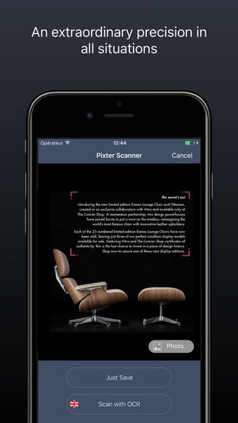Pixter Scanner OCR Documentto pełna wersja aplikacji na iPhone'a, należąca do kategorii „Biznes i produktywność” .